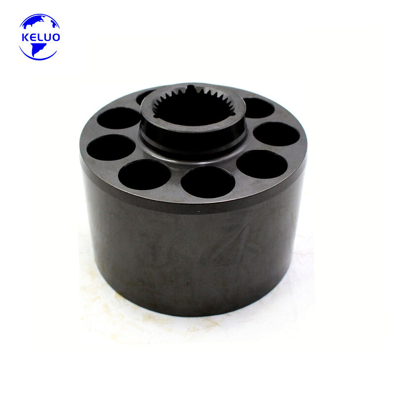 Блокът цилиндър JRR045 е задължителен компонент на хидравлична помпа, проектиран за оптимална производителност в изискващи хидравлични системи. Тази прецизно обработена част служи като централен корпус за буталата, осигуряваща гладко преместване на флуида и ефективна предаване на мощност в осеви пистонни помпи.