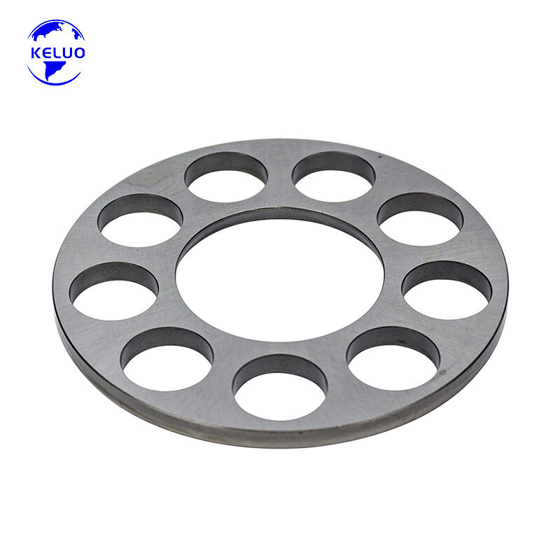 Hergestellt aus hochfesten Materialien und nach strengen Qualitätsstandards gefertigt, ist diese Halteplatte dafür ausgelegt, extremen Druckverhältnissen und anspruchsvollen Bedingungen im Bau- und Tiefbaueinsatz standzuhalten. Sie ist ein wesentlicher Bestandteil der Drehgruppe der Hydraulikpumpe und entscheidend für die korrekte Ausrichtung und Funktion der Kolben und Schuhe.