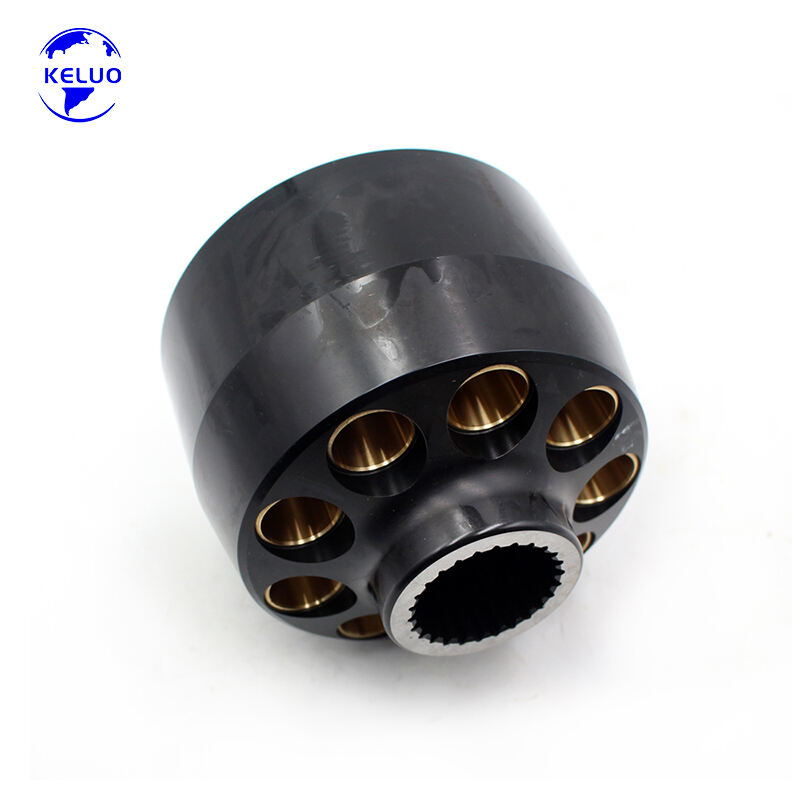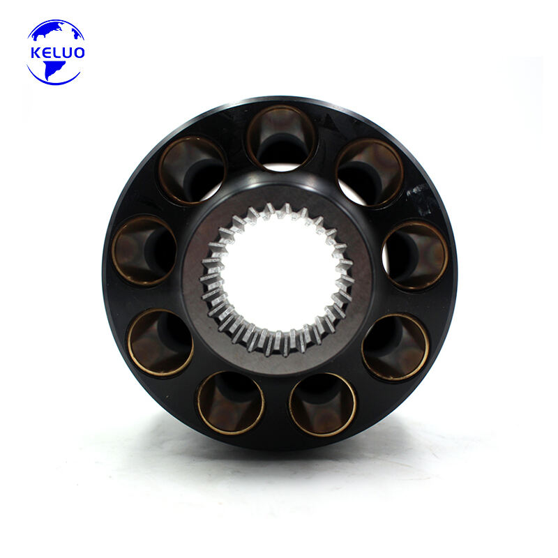 The Cylinder Block is a critical rotating component in axial piston pumps, serving as the central housing for pistons and facilitating efficient fluid transfer within hydraulic systems. This precision-engineered component ensures smooth conversion of mechanical energy into hydraulic power by maintaining exact alignment between key pump elements. Designed to withstand high-pressure environments, it features optimized fluid passageways that minimize pressure loss and maximize volumetric efficiency, making it essential for reliable hydraulic system operation across various industrial applications.